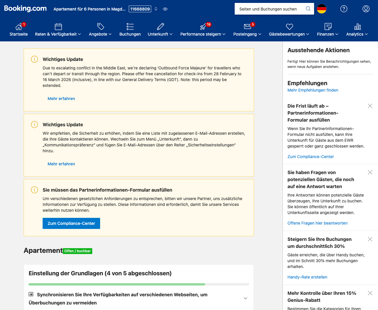 Status der Unterkunft Welchen Status (buchbar, ausgebucht, nicht buchbar) gibt es bei Booking.com?